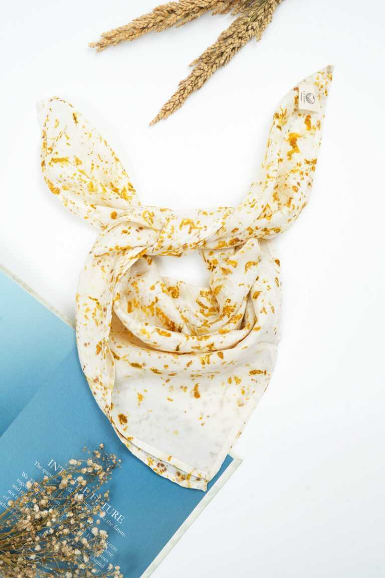 Eco-printed Silk Bandana – White with Mustard Yellow