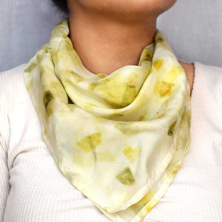 Eco-printed Silk Bandana – White with Lemon Yellow
